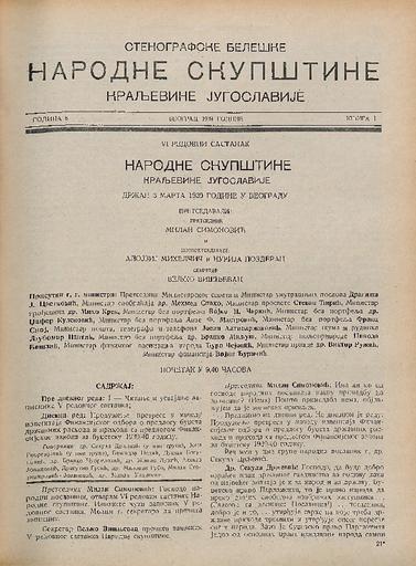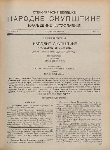 SI AS 2058/36, Stenografske beležke Narodne skupščine Kraljevine Jugoslavije, 1939