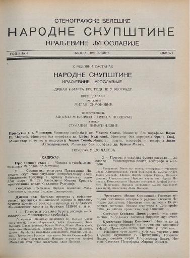 SI AS 2058/36, Stenografske beležke Narodne skupščine Kraljevine Jugoslavije, 1939