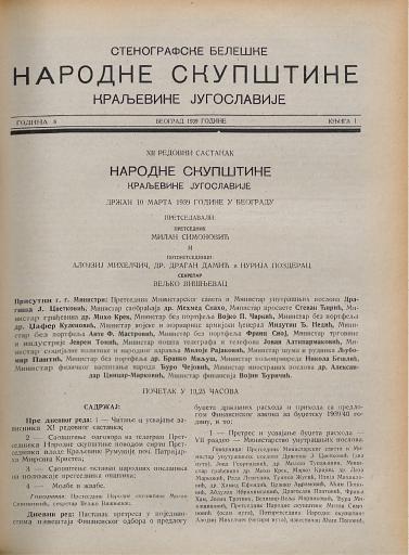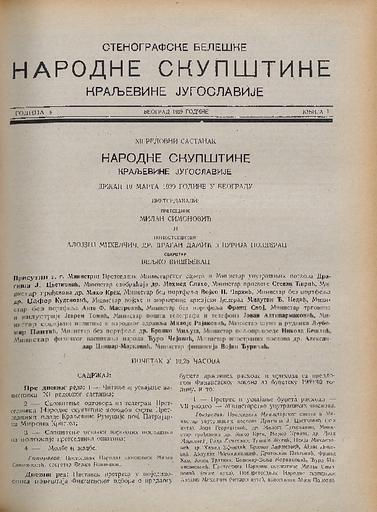 SI AS 2058/36, Stenografske beležke Narodne skupščine Kraljevine Jugoslavije, 1939