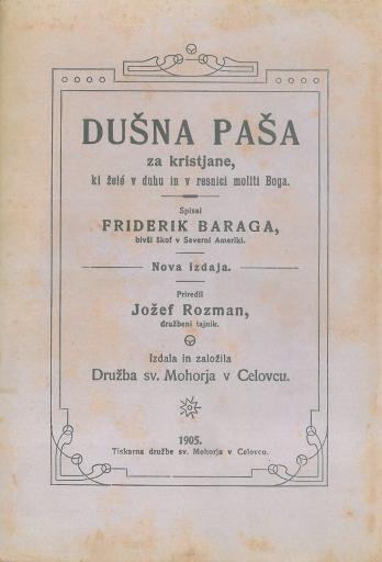 Odbor dražbe sv. Mohorja je vsled večstranskih želj sklenil, da na novo izda znameniti molitvenik „Dušna paša za kristjane, kateri žele v duhu in v resnici moliti Boga“, kateri molitvenik je svojim rojakom spisal poznejši slavni amerikanski škof, takrat še kaplan v Metliki na Dolenjskem, Friderik Baraga. Kakor je dražba svojim udom zelo ustregla, ko jim je l. 1893 in 1894 podala v novi obliki molitvenika „Življenja srečen pot“ in „Krščansko devištvo“, ki jih je spisal škof Anton Martin Slomšek, tako se nadejamo, da dragim Slovencem vstrežemo tudi z novo izdajo priljubljenega molitvenika drugega slovenskega škofa, Friderika Barage. Prvikrat je »Dušna paša« izšla leta 1830 z dostavkom: „V natis teh bukev so milostljivi knez, gospod, gospod Anton Alojzij, ljubljanski škof, 20. grudna 1828 dovolili.“ — O vrednosti in pomenu našega molitvenika piše znani slovstvenik Josip Marn: „Kakor se je bila prikupila vernim Slovencem J. Golmajrova »Sveta maša in krščansko premišljevanje na vsak dan meseca iz sv. pisma«, ki se je bila od l. 1783 do 1826 natisnila šestnajstkrat, tako se je priljubila nam tudi »Dušna paša«, katera je bila l. 1854 razširjena že v več kakor 27.000 iztisih, in je prikazala se l. 1858 na svetlo sedmikrat, v sedanjem pravopisu, v večji in manjši obliki. — V kratkem predgovoru opominja kristjana, da naj Boga moli v duhu in v resnici; v bukvah pa, ki so res, kar kaže njih ime, prava dušna paša, mu k temu tudi pomaga. Vse je v njih prav prisrčno in pobožno. Česar e polno srce, rado izgre — v besedo in pismo. To je izpolnil Baraga. — Veliko dobrih in lepih molitvenih bukvic smo dobili Slovenci pozneje, vendar segajo posebno stareji radi še sedaj po »Dušni paši«, katera jim zadostuje v vseh dušnih potrebah. To je vernim Slovencem prava duhovna čebelica, s katero si pasejo svojo dušo ter nabirajo sladke strdi za večno življenje.“ Pri prirejanju nove izdaje smo pazili na to, da podamo Baragov molitvenik kolikor mogoče popolen po prvih izdajah. Vrsto molitev pa smo po nekod premenili radi večje preglednosti.