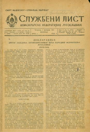 • Службени лист Демократске федеративне Југославије, 1945, бр. 1