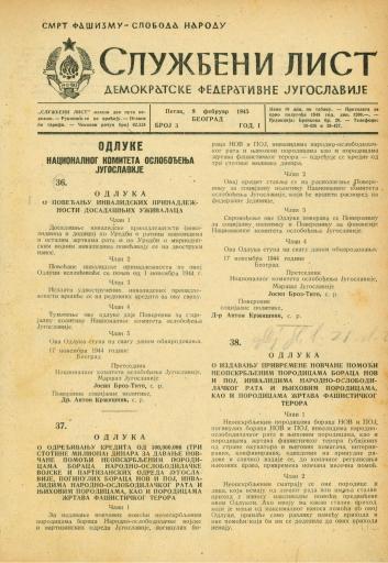 • Службени лист Демократске федеративне Југославије, 1945, бр. 3