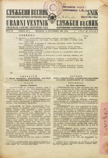 - Службени весник Президијума Народне скупштине ФНРЈ, 1952, бр. 18