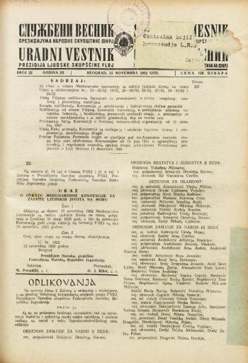 Службени весник Президијума Народне скупштине ФНРЈ, 1952, бр. 22