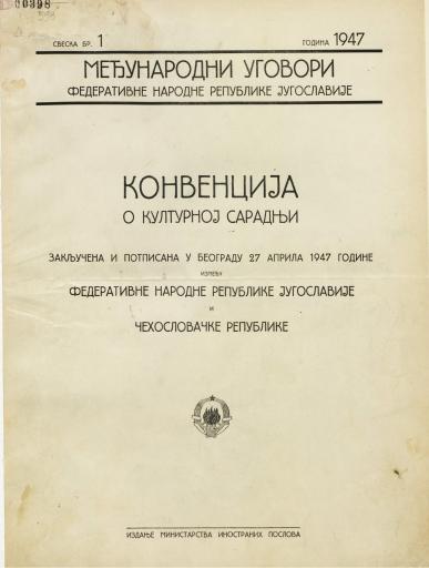 - Konvencija o kulturni saradnji između Federativne narodne republike Jugoslavije i Čehoslovačke republike