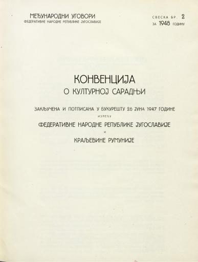 - Konvencija o kulturnoj saradnji između Federativne narodne republike Jugoslavije i Kraljevine Rumunije
