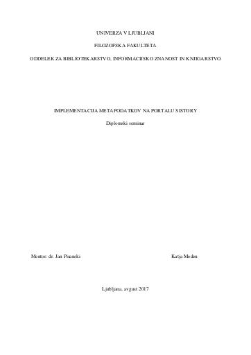 Z razvojem Interneta, ki prinaša čedalje več informacij, metapodatki in metapodatkovni standardi postajajo čedalje bolj pomembni koncepti v našem vsakdanu. Predstavljena in opisana sta aplikacijski profil ter prehod med aplikacijskim profilom Sistory in DCTERMS, ki poda podlago za analizo implementacije metapodatkov na portalu. Gledano v celoti sta načina implementacije metapodatkov na portalu SIstory koristna oziroma efektivna, aplikacijski profil in prehod opravljata svoje naloge, čeprav se v procesu oblikovanja slednji zasuka iz poudarka uporabnika in poenostavljanja elementov na poudarek strojne berljivosti in bogatejšega opisovanja informacijskih objektov.