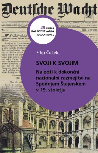 Čuček ; Filip ; Kosi ; Jernej ; Cvirn ; Janez ; Lazarević ; Žarko ; Promitzer ; Christian ; Godina-Golija ; Maja ; Špendal ; Manica ; Ferlež ; Jerneja ; Stavbar ; Vlasta ; Maček ; Jure ; Lončar ; Nina ; Jenuš ; Gregor ; Zajšek ; Boštjan ; Borin ; Andreja ; Lipavic, Oštir ; Alja ; Premzl ; Primož ; Kac ; Dejan ; Pivec ; Franci ; Pungartnik ; Marjan ; Hajnrih ; Sabina | Nemci in Maribor : stoletje preobratov : 1846-1946 | Maribor | Umetniški kabinet Primož Premzl | 2012 | ||