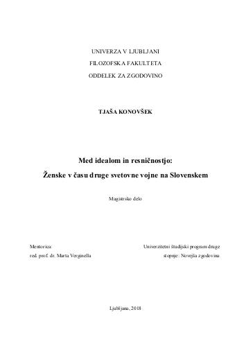 V svoji magistrski nalogi se osredotočam na vloge spolov v času druge svetovne vojne na Slovenskem. Razpredem skupek identitet in motivov, tako revolucionarnih kot tradicionalnih. Revolucionarno obdobje je bilo globoko zaznamovano s stoletja staro antropološko situacijo – krščanstvom. Druga svetovna vojna je spremenila razmerja med spoloma in omogočila ženskam vstop v moško sfero. Slednje so storile s pomočjo tradicionalnih mehanizmov, ki so imeli lastna pravila, zakonitosti in razvoj. Moje delo pokaže, da so ženske dajale osvobodilnemu gibanju legitimnost, v zameno pa je slednje ženskam dalo nov družbeni položaj – položaj, ki je bil mnogo bolj tradicionalen, kot je trdilo socialistično gibanje. Zgodbe bork, aktivistk, družinskih članov in neodločenih opazovalcev nam razkrijejo, kako je Kraljevina Jugoslavija izgubila svojo moč, kako je okupacija zaznamovala vojna leta in kako je nova socialistična Jugoslavija našla svojo moč.