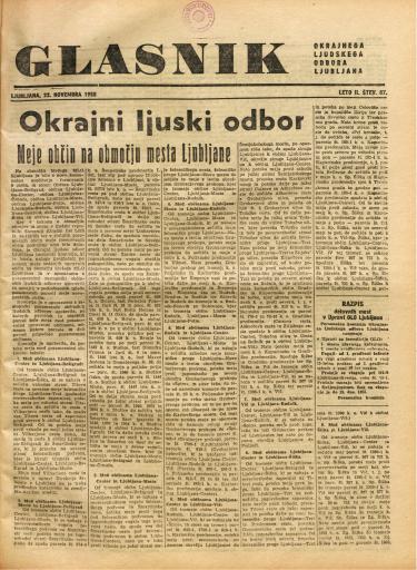 Založnik(i):Okrajni ljudski odbor, Ljubljana, Mestni ljudski odbor, Ljubljana