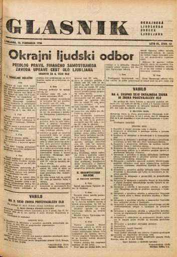 Založnik(i):Okrajni ljudski odbor, Ljubljana, Mestni ljudski odbor, Ljubljana