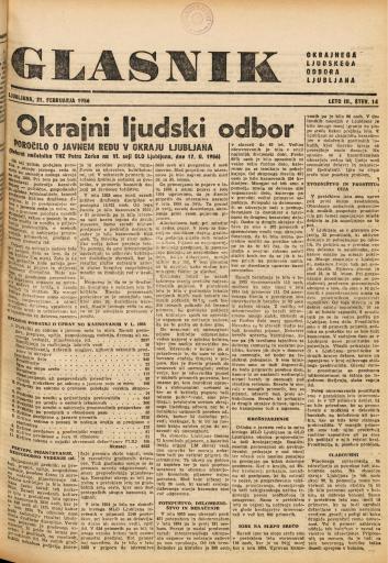 Založnik(i):Okrajni ljudski odbor, Ljubljana, Mestni ljudski odbor, Ljubljana