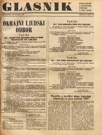 Založnik(i):Okrajni ljudski odbor, Ljubljana, Mestni ljudski odbor, Ljubljana