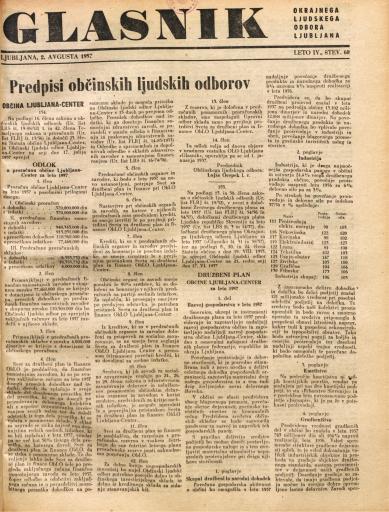 Založnik(i):Okrajni ljudski odbor, Ljubljana, Mestni ljudski odbor, Ljubljana