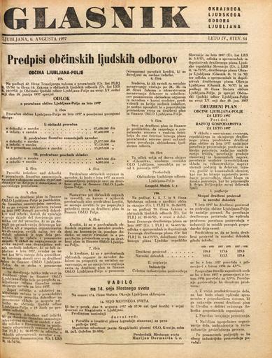 Založnik(i):Okrajni ljudski odbor, Ljubljana, Mestni ljudski odbor, Ljubljana