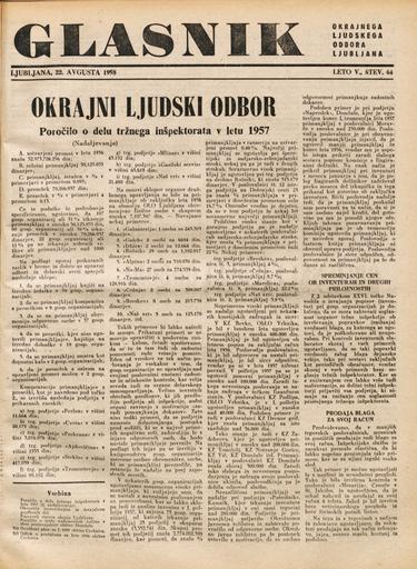 Založnik(i):Okrajni ljudski odbor, Ljubljana, Mestni ljudski odbor, Ljubljana
