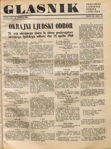 Založnik(i):Okrajni ljudski odbor, Ljubljana, Mestni ljudski odbor, Ljubljana