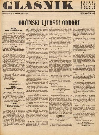 Založnik(i):Okrajni ljudski odbor, Ljubljana, Mestni ljudski odbor, Ljubljana