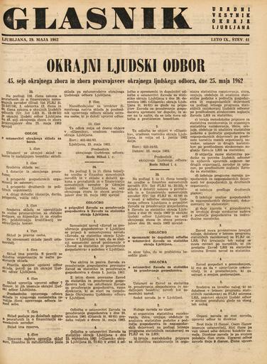 Založnik(i):Okrajni ljudski odbor, Ljubljana, Mestni ljudski odbor, Ljubljana