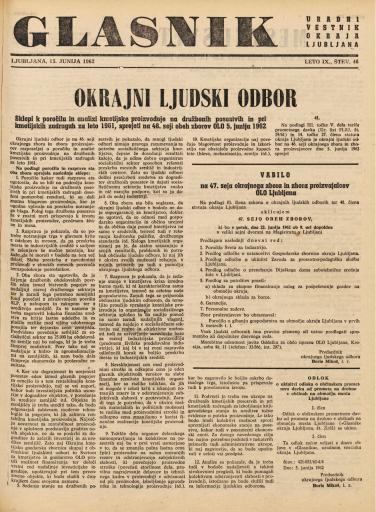 Založnik(i):Okrajni ljudski odbor, Ljubljana, Mestni ljudski odbor, Ljubljana