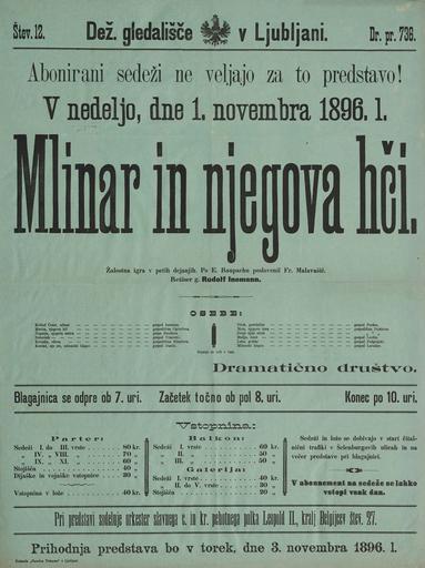 Založnik(i):Deželno gledališče v Ljubljani, Ljubljana