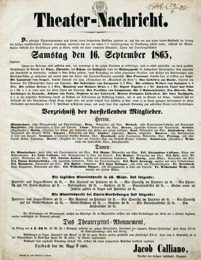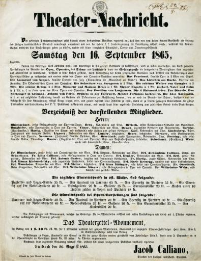 Gledališki program 1865/1866