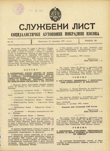 Ključne besede:uradni listi, Kosovo, Jugoslavija