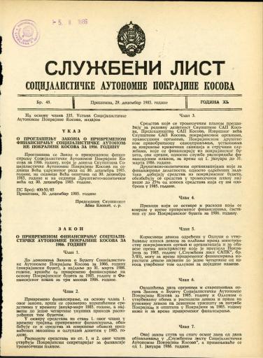 Ključne besede:uradni listi, Kosovo, Jugoslavija