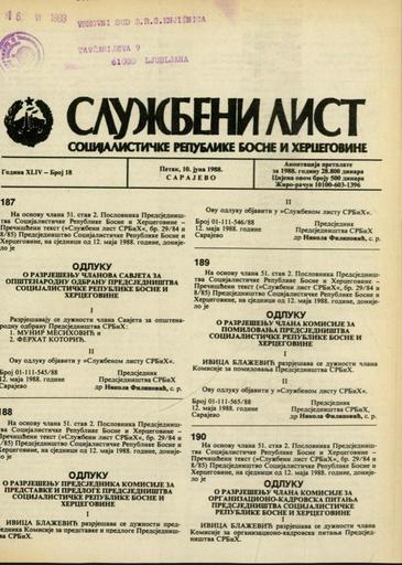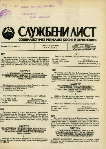 Založnik(i):Službeni list SR BiH, Sarajevo