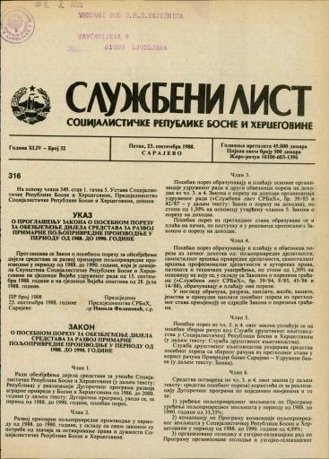Založnik(i):Službeni list SR BiH, Sarajevo