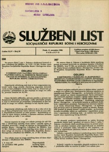 Založnik(i):Službeni list SR BiH, Sarajevo