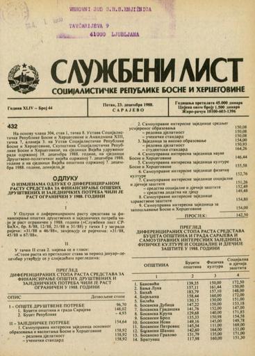 Založnik(i):Službeni list SR BiH, Sarajevo