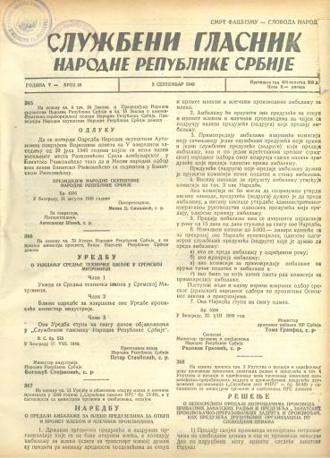 Ključne besede:uradni listi, Srbija, Jugoslavija