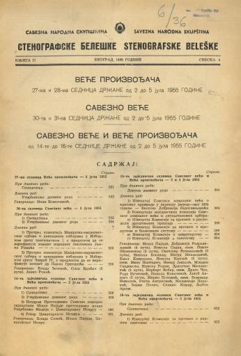 - Veće proizvođača, 27-ma i 28-ma sednica držane od 2 do 5 jula 1955 godine