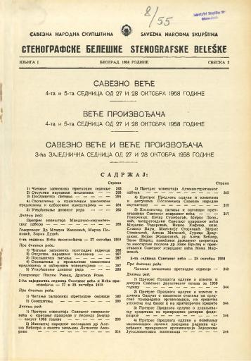 - Savezno veće i veće proizvođača, 3-ha zajednička sednica od 27 i 28 oktobra 1958 godine