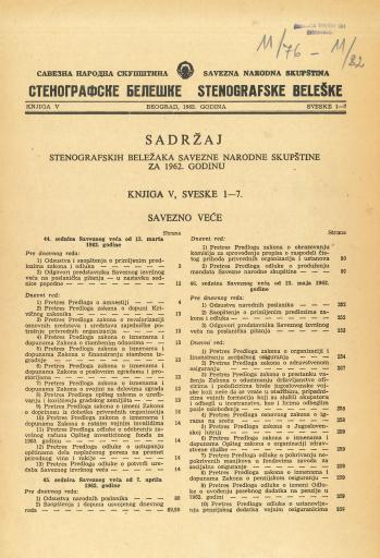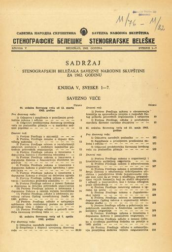 Savezna narodna skupština, Stenografske beleške, Knjiga V, Sveske 1-7