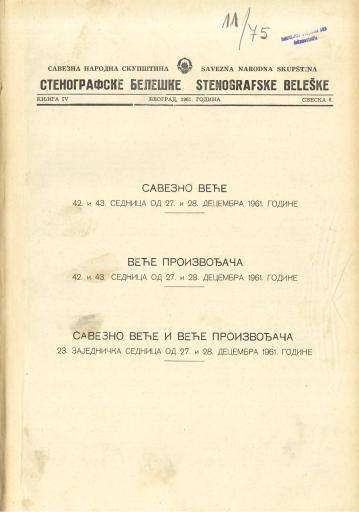 Savezna narodna skupština, Stenografske beleške, Knjiga IV, Sveska 6