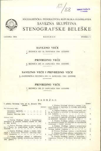 - Savezno veće, 7. sednica od 14. januara 1964. godine