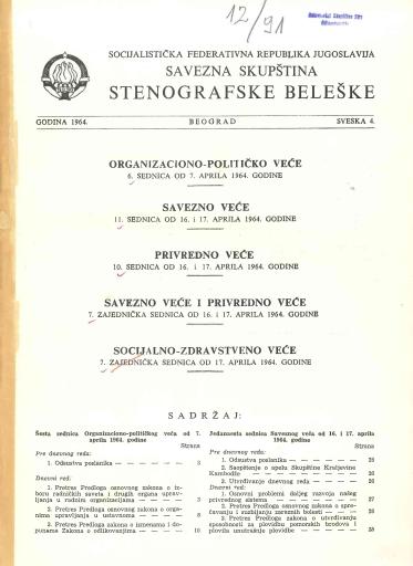 - Socijalno-zdravstveno veće, 7. zajednička sednica, od 17. aprila 1964. godine
