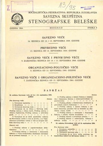 - Savezno veće ,16. sednica, od 14. i 15. septembra 1964. godine