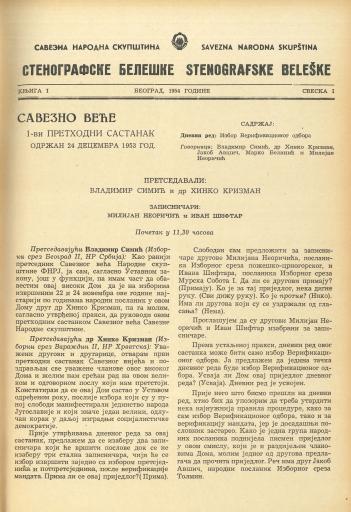 Savezna narodna skupština, Stenografske beleške, Knjiga I, Sveska 1