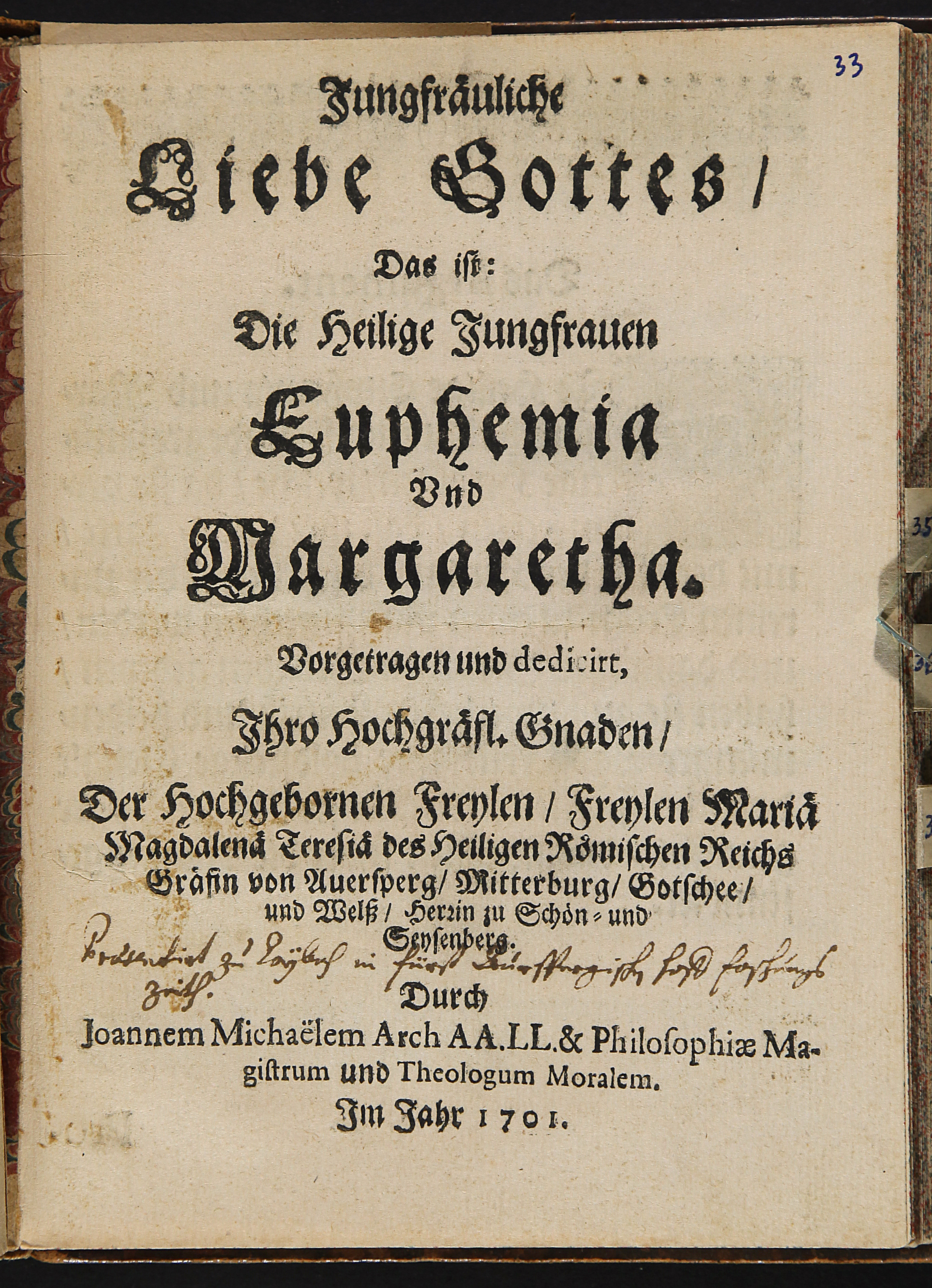 Faksimile: Ob pustu 1701 (okrog 8. februarja): Deviška ljubezen do Boga
