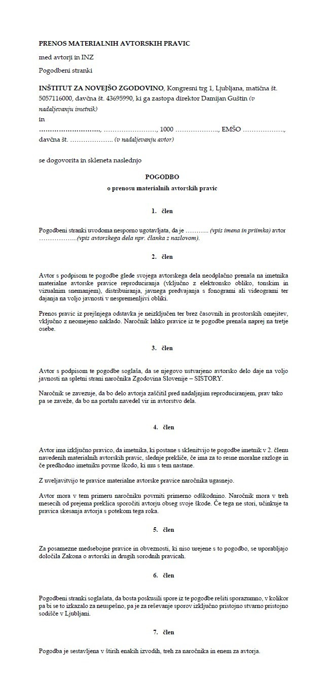 Avtorici v prispevku orišeta zgodovino avtorskega prava in predstavita razvoj in teoretski okvir avtorskih in sorodnih pravic v Sloveniji. Poseben poudarek namenita avtorskemu pravu v digitalni dobi, ki ga predstavita na primeru portala Zgodovina Slovenije – SIstory kot primeru dobre prakse, saj sta prepričani, da brez (upoštevanja) avtorskih pravic niso zagotovljene vse potrebne spodbude za nadaljnje ustvarjanje v analognem in digitalnem svetu.