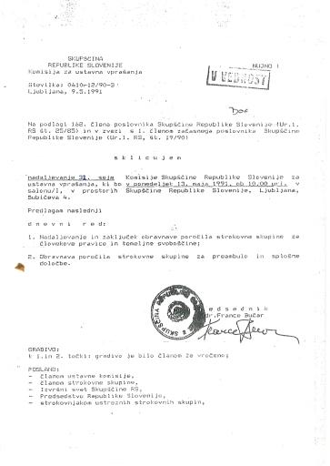 32. seja Komisije za ustavna vprašanja, 9. 5. 1991, 13. 5. 1991, 14. 5. 1991, 20. 5. 1991, 23. 5. 1991
