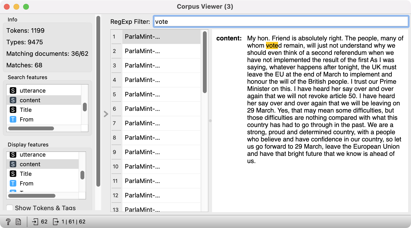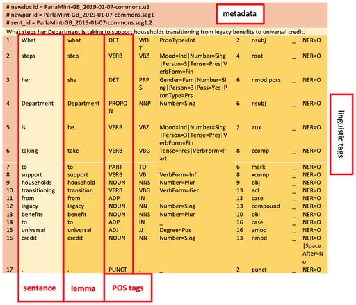 V demokratičnih državah parlament deluje kot osrednje predstavniško in zakonodajno telo. Digitalni zapisi parlamentarnih razprav omogočajo raziskovanje političnega, družbenega in kulturnega vzdušje določenega časa. Ti zapisi so raziskovalcem tipično na voljo v obliki korpusov.