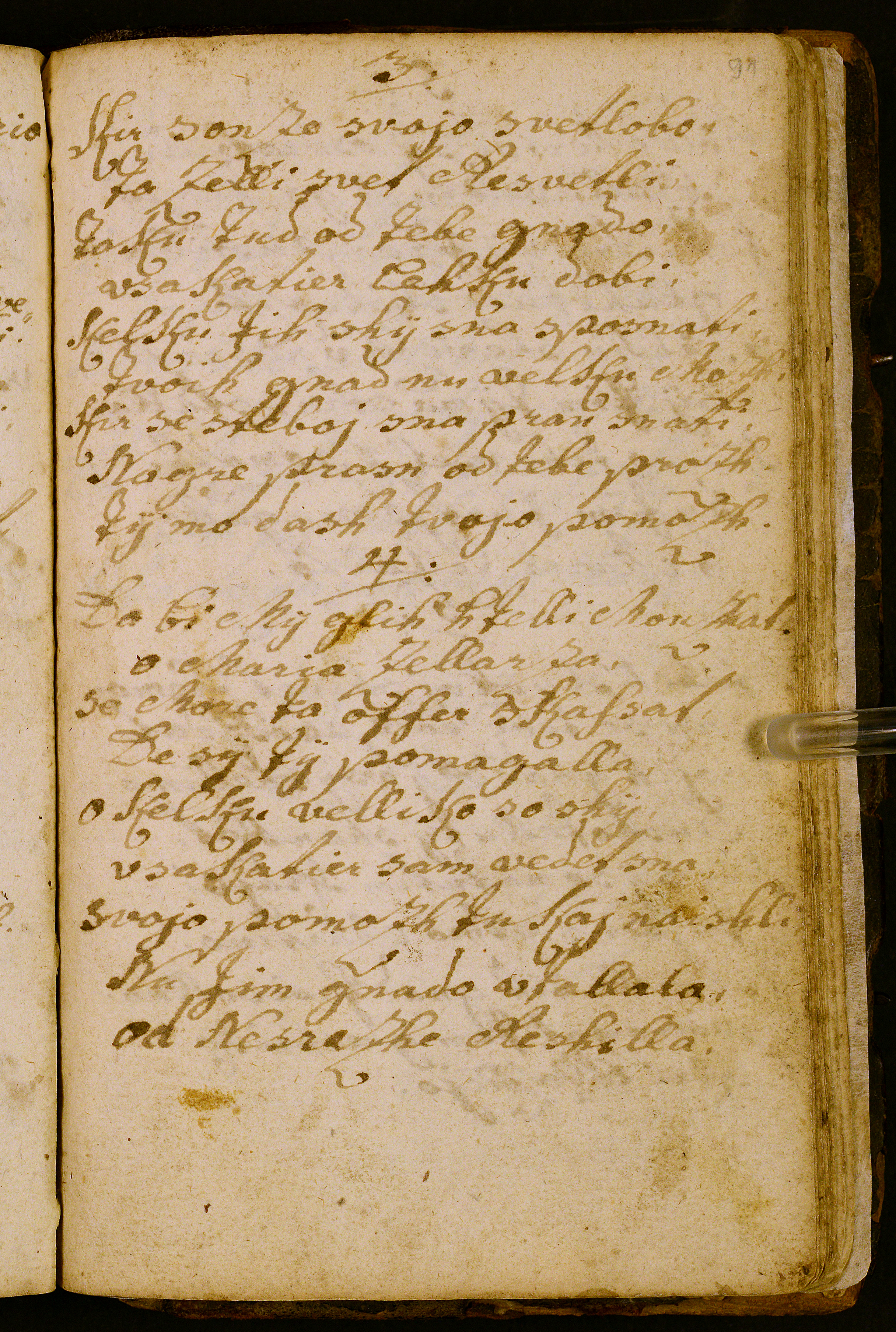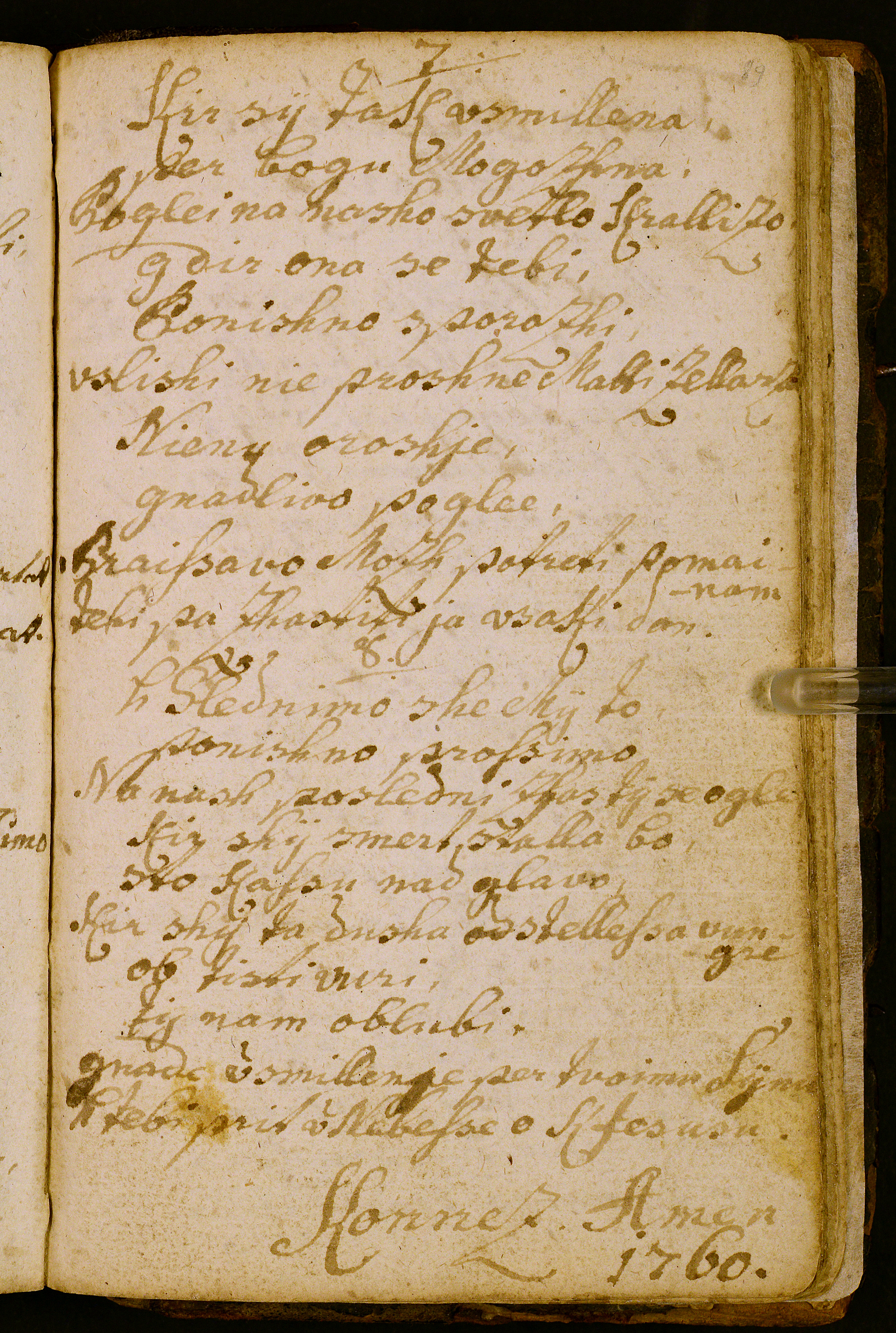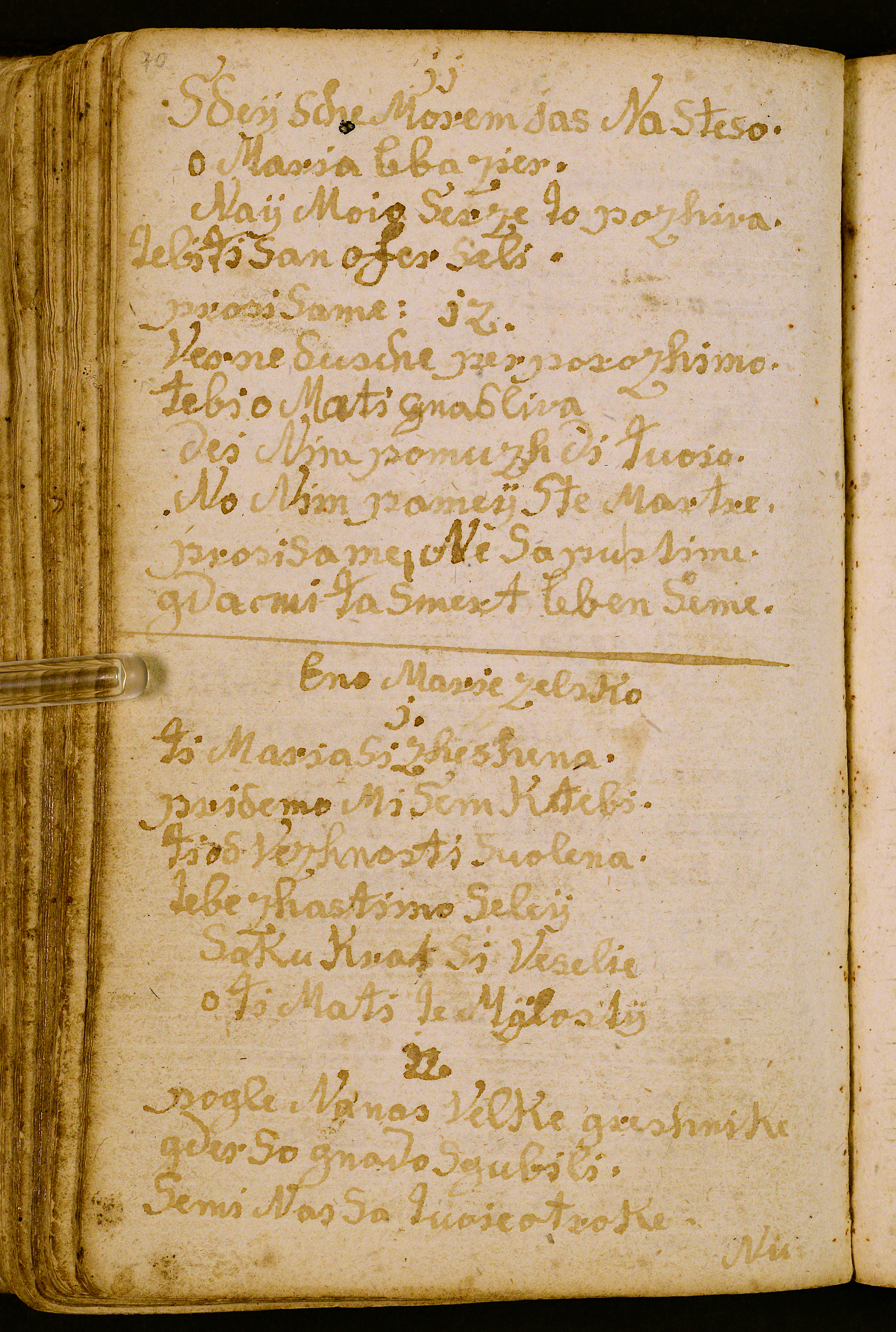 Foglarjeva pesmarica s srede 18. stoletja je najstarejši ohranjeni slovenski štajerski rokopis pesmi, saj so ga v nasprotju s Kalobskim večinoma napisali Štajerci. Vsebuje najstarejše marijinoceljske pesmi v slovenščini, štiri svetniške pesmi, pesem v čast Sveti trojici, dve pesmi z eshatološko vsebino, pesem o češčenju Jezusovega imena, postno spokorno pesem in pesem o ljubezni do Boga. Po jezikovnih značilnostih sodeč izvira iz vzhodnoštajerskega prostora. V rokopisu so omenjeni mesto Maribor, reka Drava in cerkev svetega Martina v Kamnici. Nekatere pesmi najdemo še v Pesmarici iz Gorij, Paglovčevi pesmarici, v Cerkvenih pesmih in molitvah, Maurerjevi pesmarici in Krebsovi pesmarici. Rokopis je vezan v zbornik, ki vsebuje tudi tri tiskane pesmarice: Primož Lavrenčič, Missionske catholish karshanske pejssme (1752); Ahacij Stržinar, Peissem Od teh velikih odpuſtikov (1744); Andohtlive pejsme (1756). Prvih deset pesmi v rokopisu je leta 1757 zapisal Lovrenc Foglar [Voglar], ki je verjetno ustvaril tudi naslovni list, saj bi začetnici L in V lahko nakazovali njegovo avtorstvo: (1) Pessem od Svete Troÿze; (2) Ta druga pessem od boshje lubesni na visho peſme miſerere; (3) Ta treitia Pessem od Svetega gllaſa; (4) Ta zheterta Pessem od Divize Marie navisho o Maria polna gnade; (5) Ta druga pessem od Divize Marie peta pessem na visho od ovzhize; (6) Ta tretia Pessem od divize Marie ſheſta pessem; (7) Ta zheterta od Marie Pessem sedma vagventu od Mariae Divize; (8) Ta ossma Pessem od te prezhudeſshne Terolarſke divize svete Nottburge; (9) Ta deveita peissem od Marie Magdalene; (10) Ta deſſeta od vernih dush Pessem. Naslednje štiri pesmi je istega leta napisal Matija Vezjak/Bezjak/Bizjak (Matiaſ Weſiak): (11) Ta edenaiſta pessem Pessem od gnadlive matere; (12) Ta dvanaista pessem od zhloveka zila nu kunza kak nevanoie; (13) Ta trinaiſta pessem od Adama nu Eive; (14) Ta shtirnaista pessem od ovzhize sgublene. Tretji pisec pesmi z naslovom (15) Pessem od Svetiga Iosepha se ni podpisal, nehal je tudi s štetjem pesmi, o času nastanka pa lahko sklepamo glede na abecedo, ki jo je ista roka zapisala na koncu pesmarice leta 1758. Prav tako neznani četrti pisec je avtor dveh Marijinih pesmi, in sicer (16) Slovo od Marie ter (17) Eno Marie Zelsko. Sledi svetniška pesem (18) od S. Urshe na visho od S. Angela Varoha neznanega avtorja. Pesmi so bile verjetno zapisane med letoma 1758 in 1760. Naslednje štiri marijinoceljske pesmi je napisal Jožef Glazer leta 1760, ki se je podpisal kot učitelj (ludimagister) pri Gornji sveti Kungoti. Po letu 1761 je bil učitelj in organist pri sv. Petru (Malečnik). Pesmi si sledijo po naslednjem vrstnem redu: (19) Ena Nova Peiſsem od Mario Zellarze; (20) Druga peiſsem od Maria Zellarze; (21) Tretja Peiſsem od Mario Zellarze; (22) Zheterta Peiſsem od Mario Zellarze. Naslednji dve pesmi sta pisali dve različni roki brez podpisa: litanijska pesem (23) O Bog otsha, Sin, Duh Sveti; marijinoceljska pesem (24) Pred tvoÿ thron mi pokleknemo. Slednja se konča z letnico 1762 in latinskim zapisom Domine deus pater (Gospod Bog Oče). Na koncu rokopisa najdemo abecedo, števila od ena do dvajset ter letnico 1758, kar ustreza pisavi tretjega pisca.