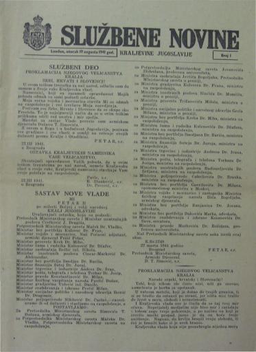 Založnik(i):Official gazette of the Kingdom of Yugoslavia, London