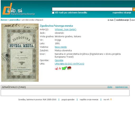 Tipologija | Avtor(ji) | Naslov | Kraj | Založba | Leto |