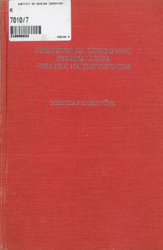 Prikaz značilnosti razvoja in delovanja strokovnih - sindikalnih - organizacij na Slovenskem od začetkov do NOB ter oris problematike virov in literature je glede vsebine in opozoril na stanje proučen osti izhodišče za nadaljnje kolektivno delo za sintetični oris sindikalnega gibanja na Slovenskem, ki ga bo treba, vsaj v pregledni obliki, napisati tudi za čas po ustanovitvi Enotnih sindikatov leta 1945. Vsebuje tudi poskus periodizacije od leta 1868 do 1941, napisana pa je zaradi neobdelanosti nekaterih smeri sindikalnega gibanja oziroma posameznih procesov v njegovem razvoju v precejšnji meri na proučevanju zlasti glasil strokovnih organizacij in arhivskih virov. Nadaljnje razprave so razporejene po kronološkem zaporedju in vsebujejo podrobnejše osvetlitve posameznih razvojnih in akcijskih značilnosti strokovnih organizacij v vseh časovnih obdobjih od začetkov do NOB, največ iz razrednega in krščanskosocialističnega sindikalnega gibanja, ki sta bila tudi po pomembnosti njegovo jedro. Sklepni prispevek naj bi bil predvsem spodbuda za načrtnejše proučevanje strokovnega gibanja v posameznih delovnih organizacijah.